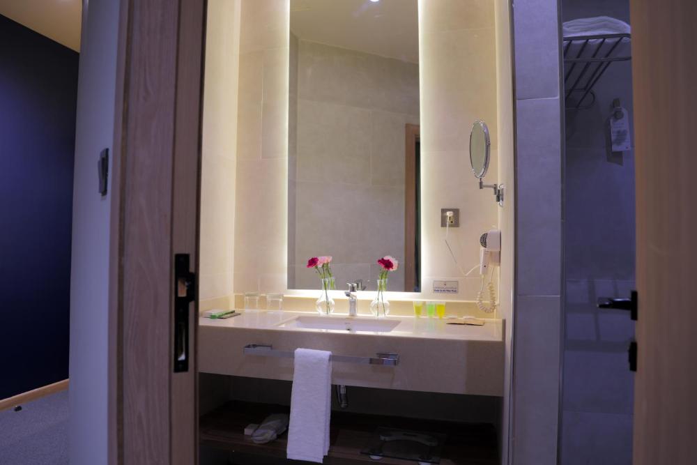 Featuring views over Riyadh City Center, the Superious Queen Room modern decor and ergonomic comfort with air conditioning, LED satellite TV, WiFi, safe, rain shower, a mini bar and a sofa.